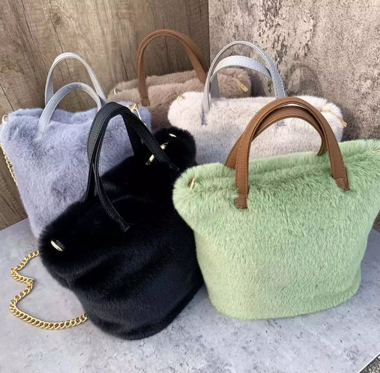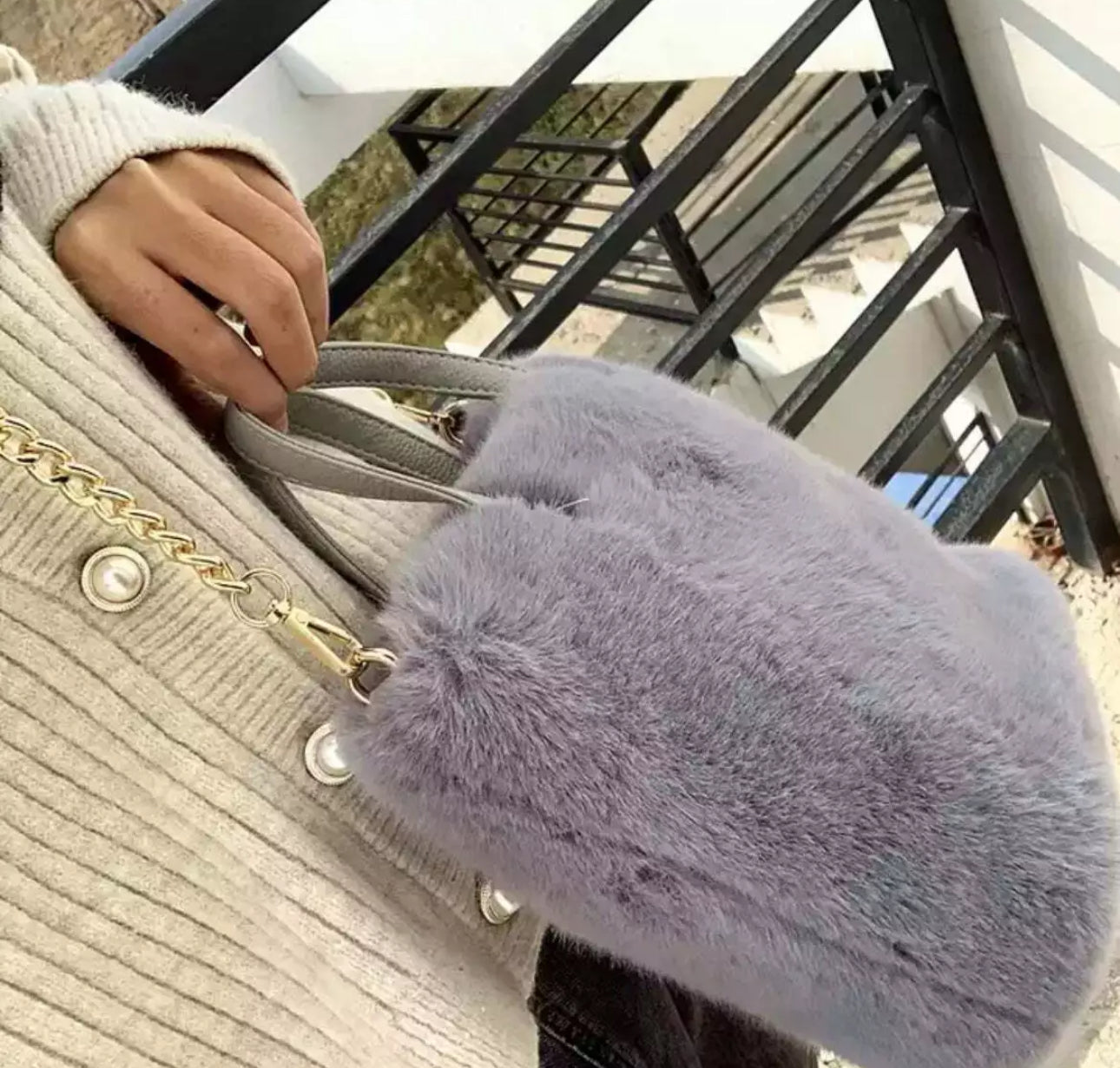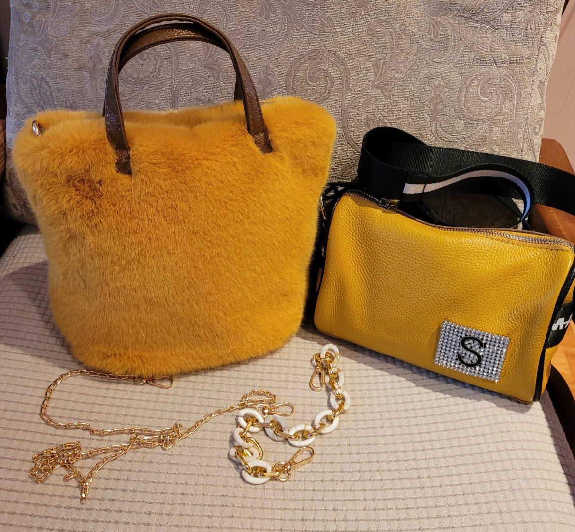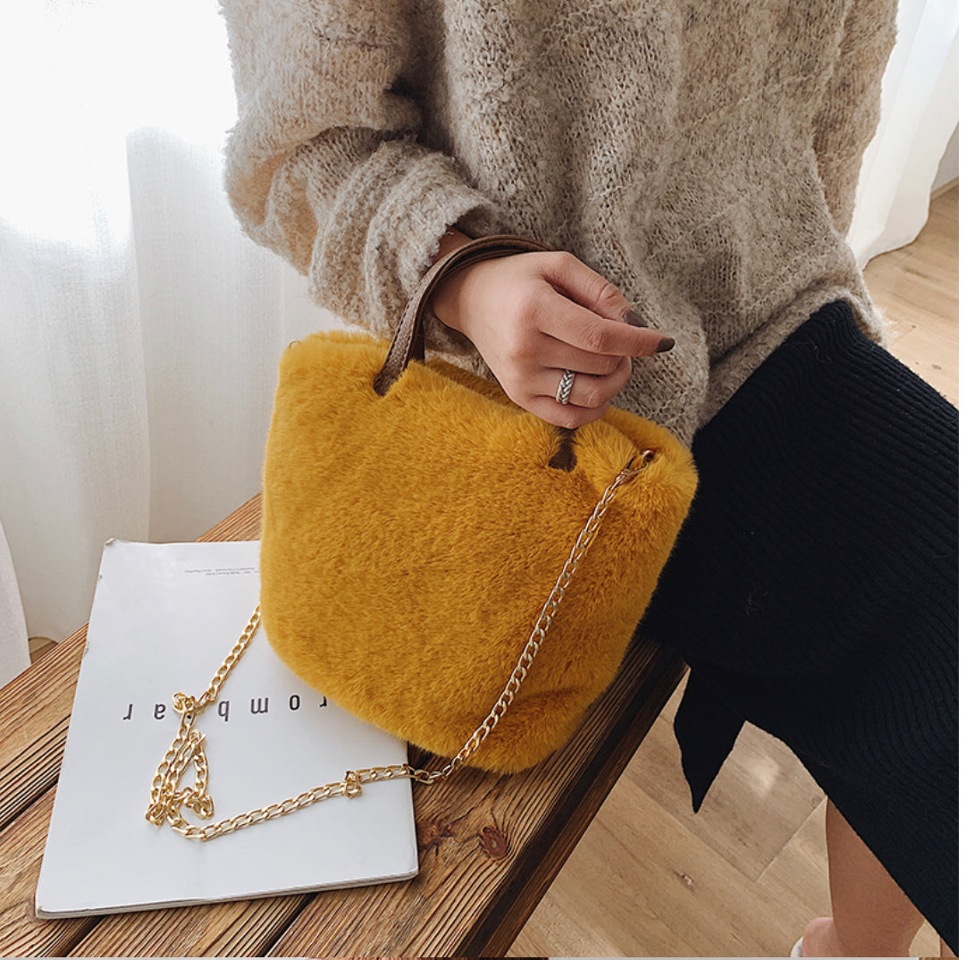 Luxe Faux Fur Handbag or Shoulder Bag Complete with gold chain